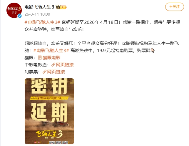 》官方微博消息,密钥延期至2026年4月18日!